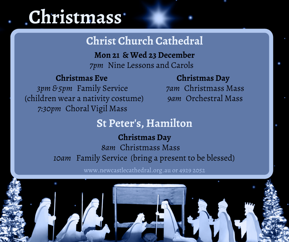 Everyone is welcome to celebrate Christmas with us at Newcastle Cathedral and at St Peter’s, Hamilton. There will be several services during the week leading up to Christmas, Christmas Eve and on Christmas Day. Registration will be required due to capacity requirements but this can be easily done using this link.